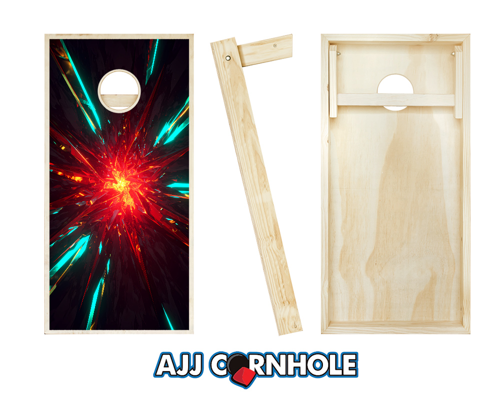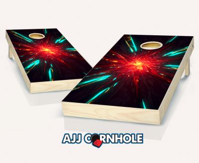 "BioTech Turquoise and Amber Red Crystaline Burst" Cornhole Set