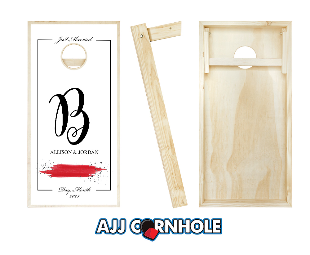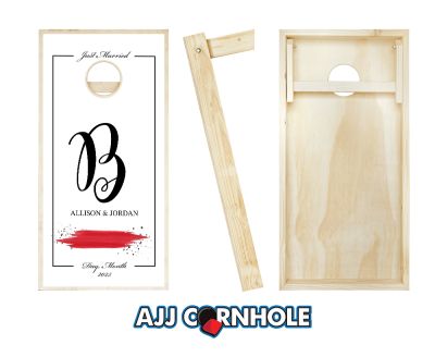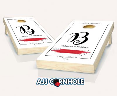 "Black Ampersand Black Tie & Red Splash" Cornhole Set