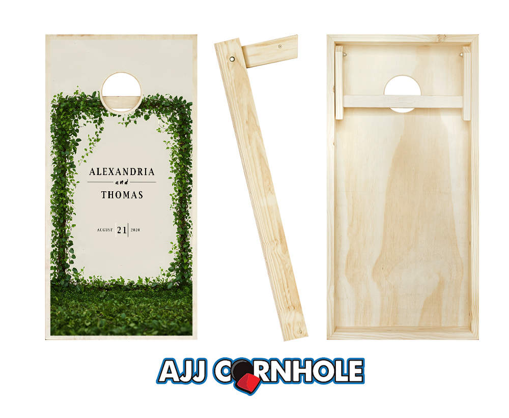All sets are made using a premium 2x4 frame and 1/2" sanded plywood playing surface. These cornhole game boards feature folding 2x4 legs secured with galvanized bolts.