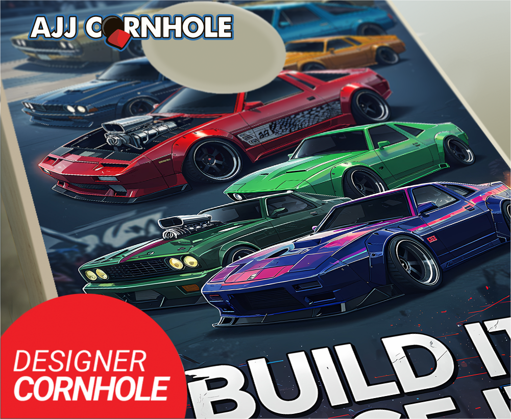 "Build It, Race It, Toss It Muscle Car" Cornhole Set