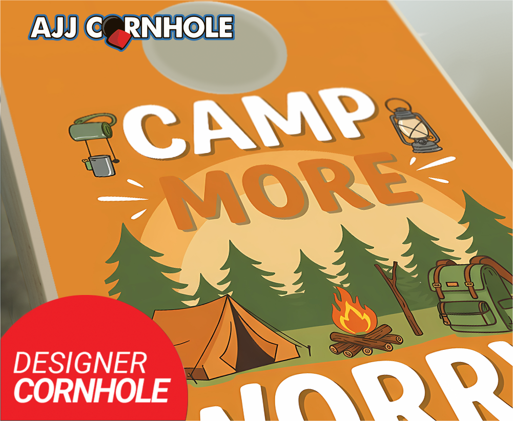 "Camp More, Worry Less Orange Design" Cornhole Set