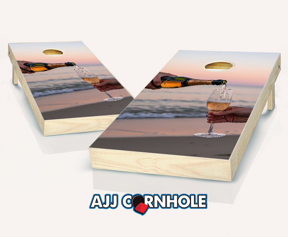 "Champagne Pour Beach" Cornhole Set