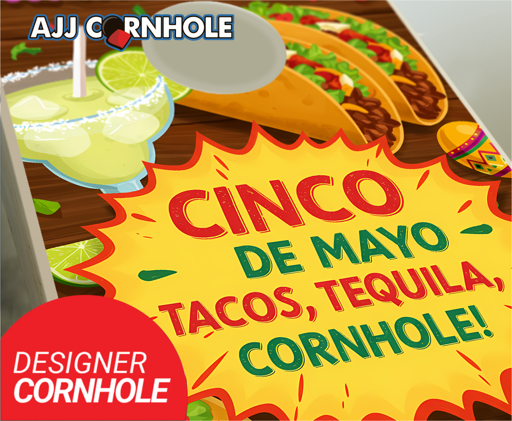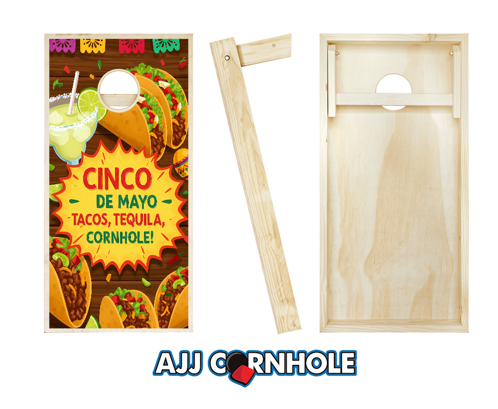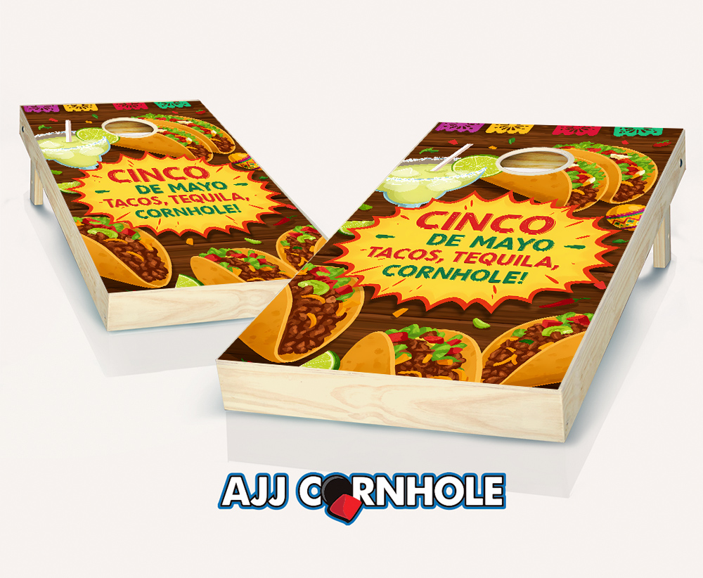 "Cinco de Mayo Tacos, Tequila & Cornhole" Cornhole Set
