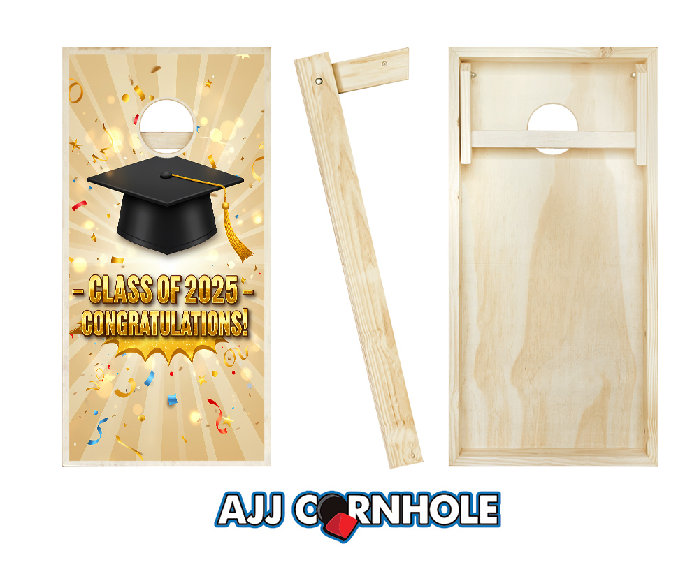 The image is directly printed on the wood and then finished with a clear coat polyurethane to protect your cornhole game boards for years of Cornhole!