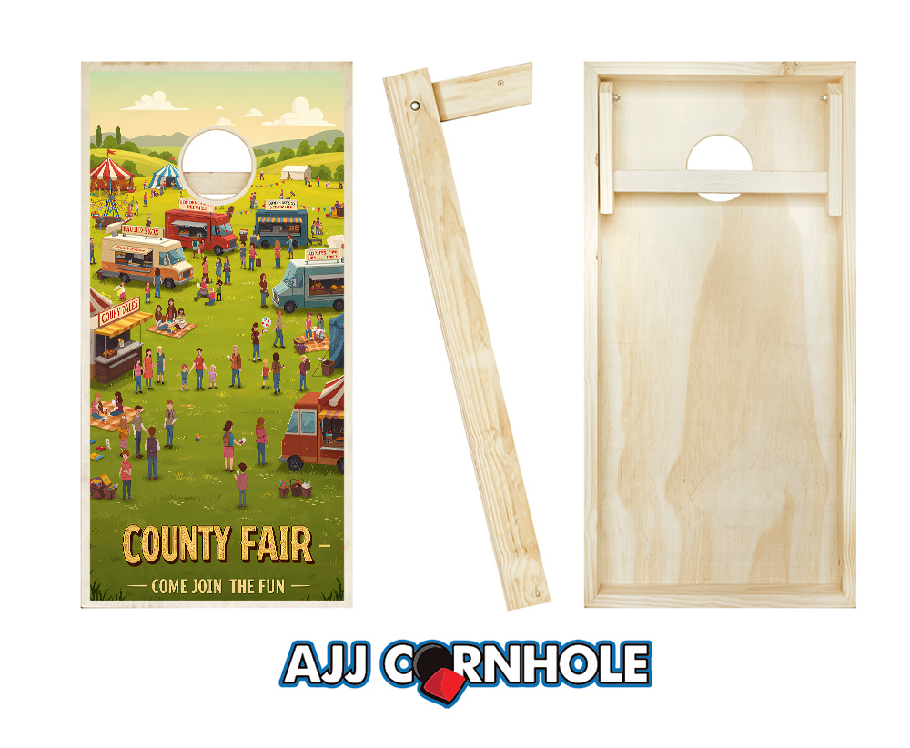 All sets are made using a premium 2x4 frame and 1/2" sanded plywood playing surface. These cornhole game boards feature folding 2x4 legs secured with galvanized bolts.