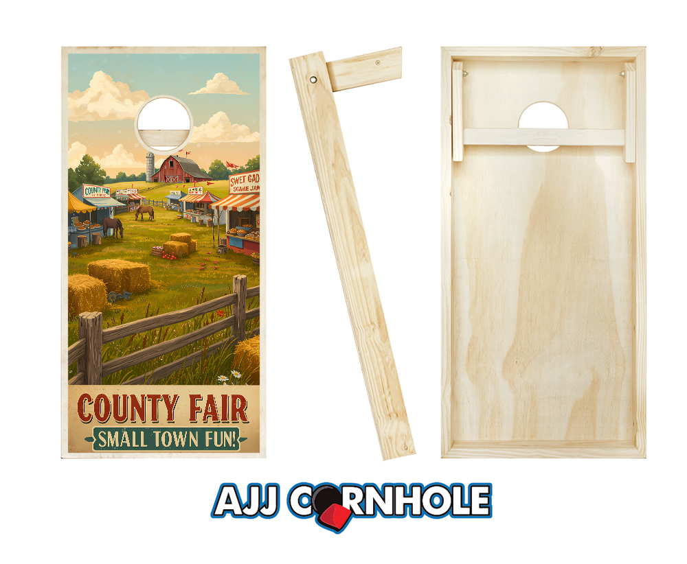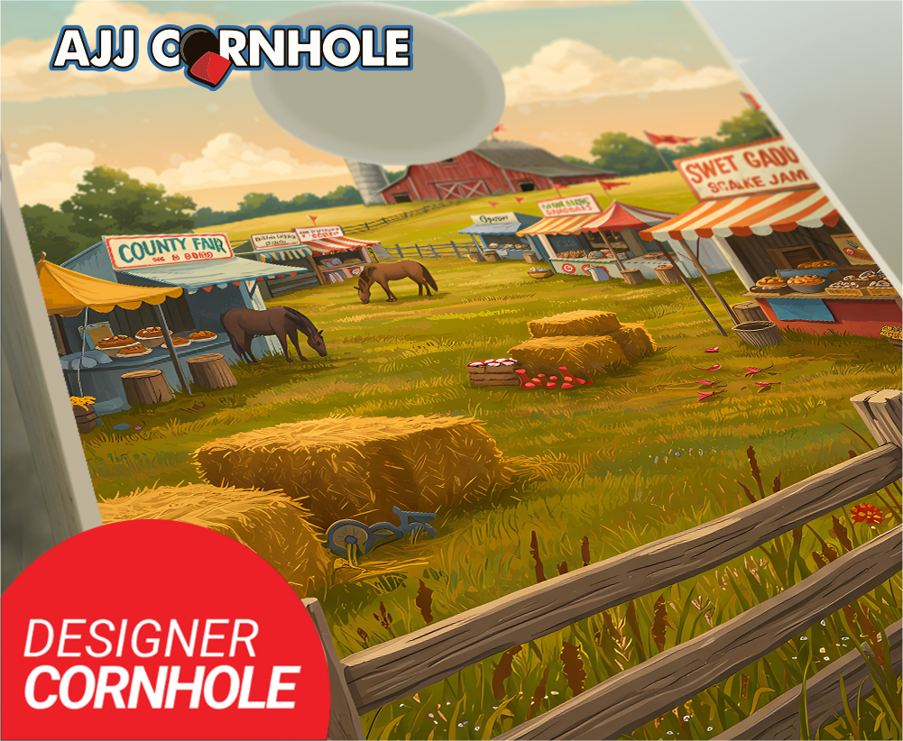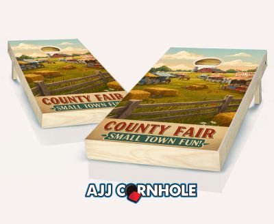 "County Fair Small Town Fun Illustration" Cornhole Set
