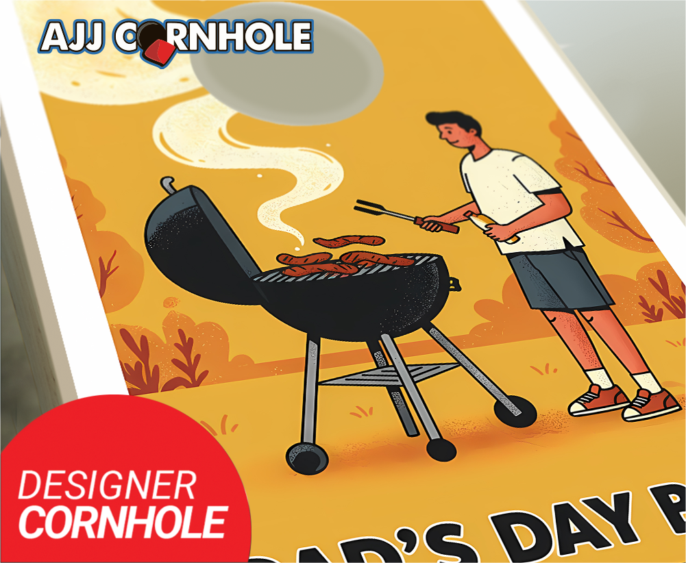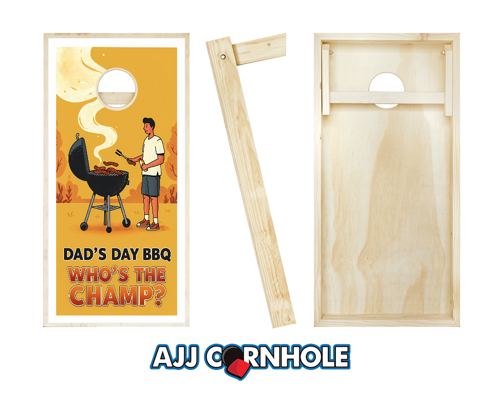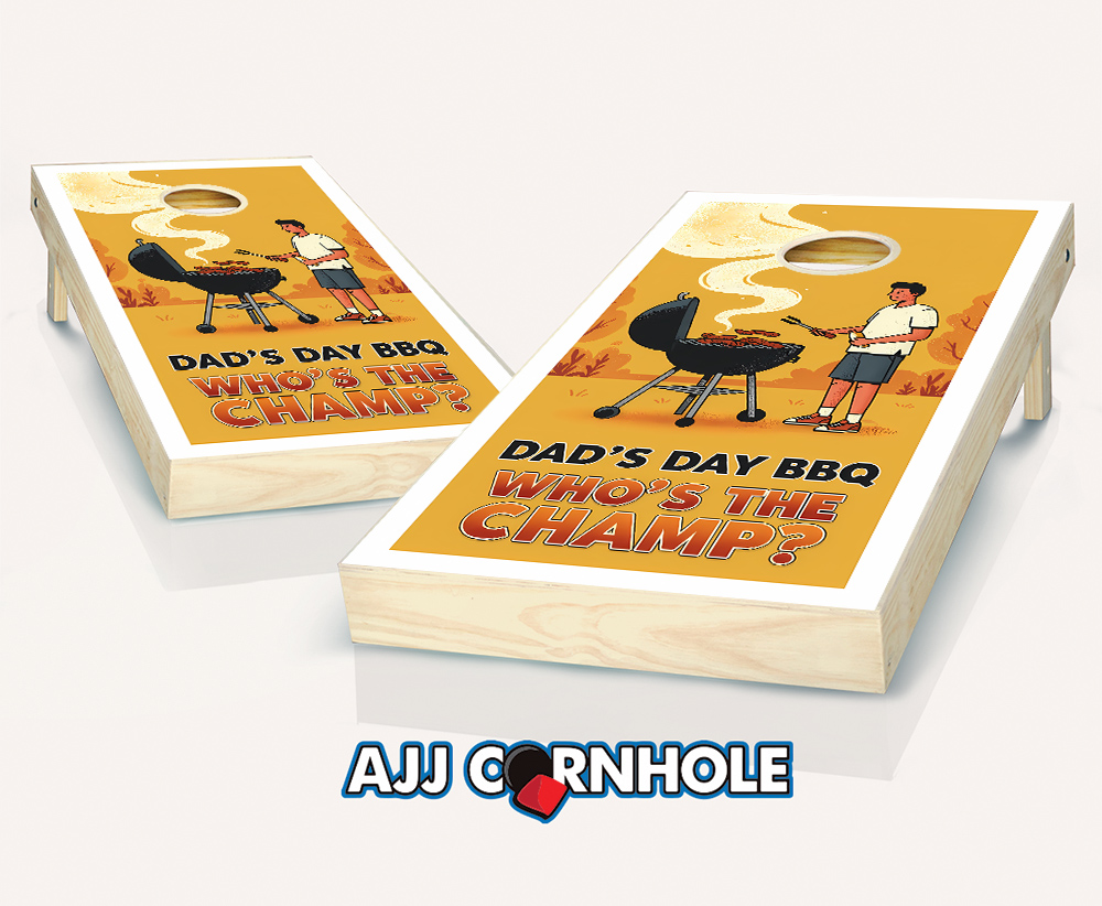 "Dad's Day BBQ Who's the Champ Yellow" Cornhole Set