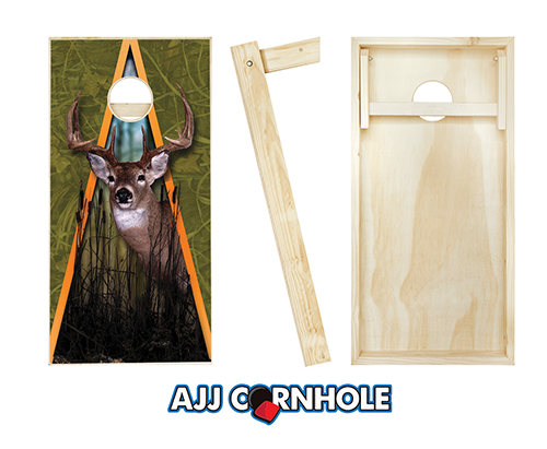 All sets are made using a premium 2x4 frame and 1/2" sanded plywood playing surface. These cornhole game boards feature folding 2x4 legs secured with galvanized bolts.