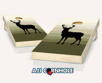 "Deer Silhouette Olive Green Gradient" Cornhole Set