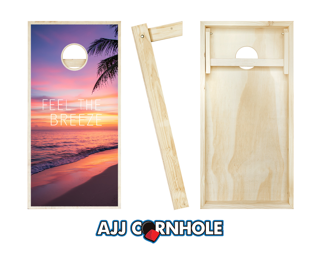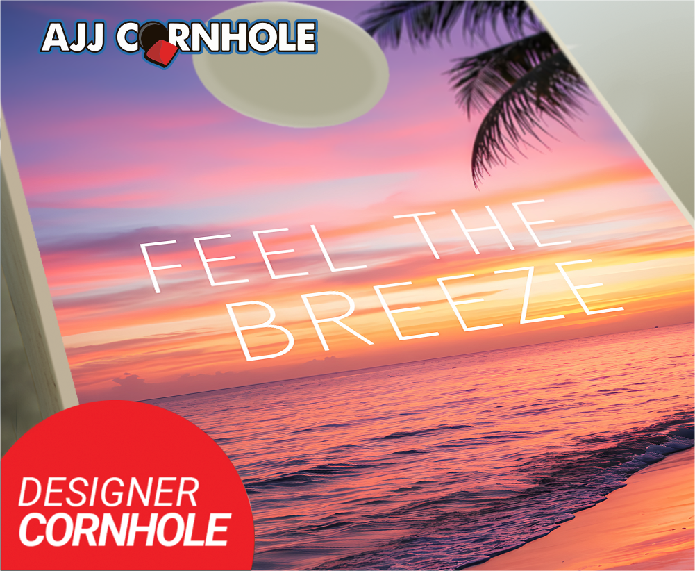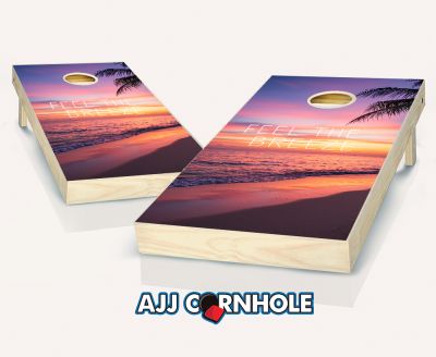 "Feel the Breeze Sunset Beach" Cornhole Set