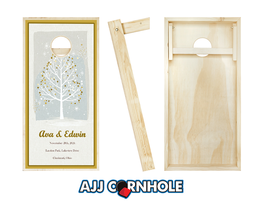 All sets are made using a premium 2x4 frame and 1/2" sanded plywood playing surface. These cornhole game boards feature folding 2x4 legs secured with galvanized bolts.