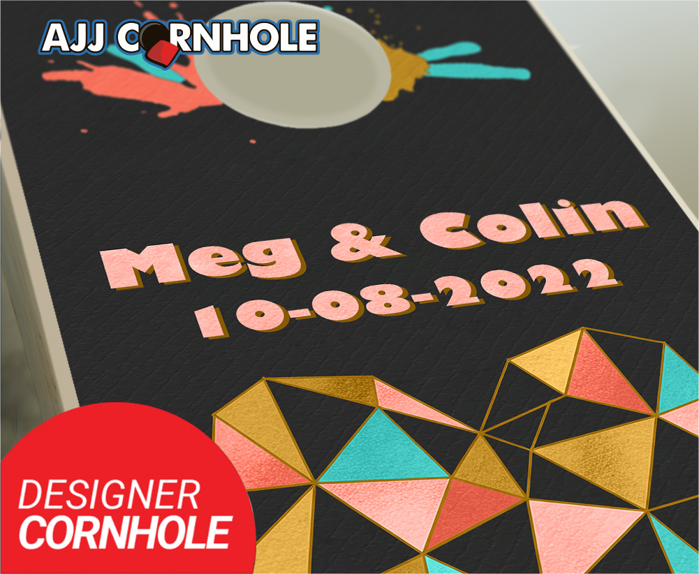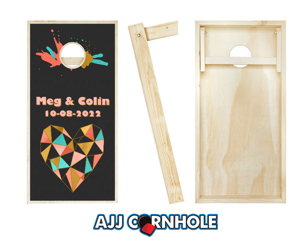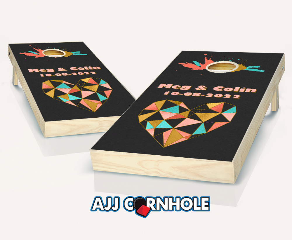 "Geometric Heart & Color Splash" Cornhole Set