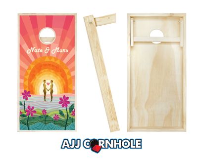 The image is directly printed on the wood and then finished with a clear coat polyurethane to protect your cornhole game boards for years of Cornhole!
