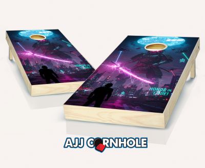 The image is directly printed on the wood and then finished with a clear coat polyurethane to protect your cornhole game boards for years of Cornhole!