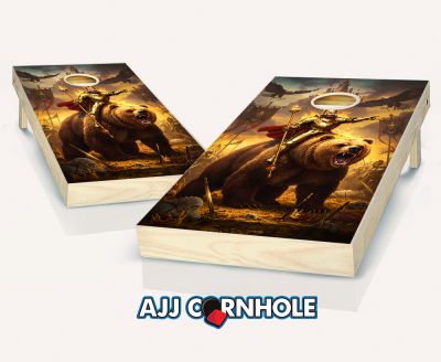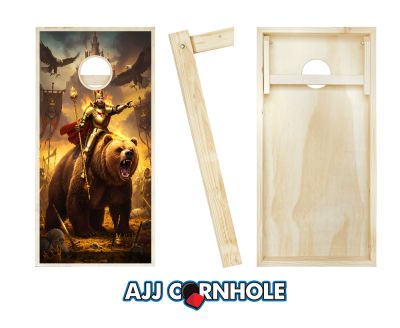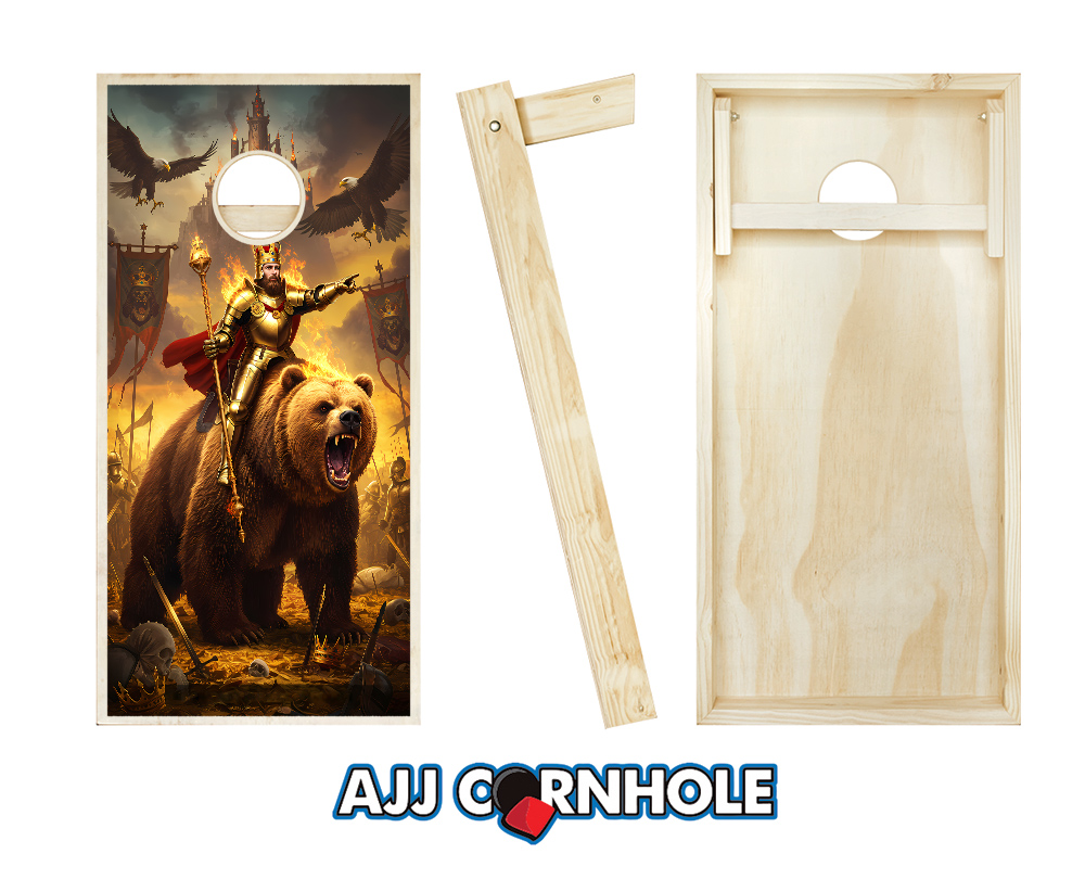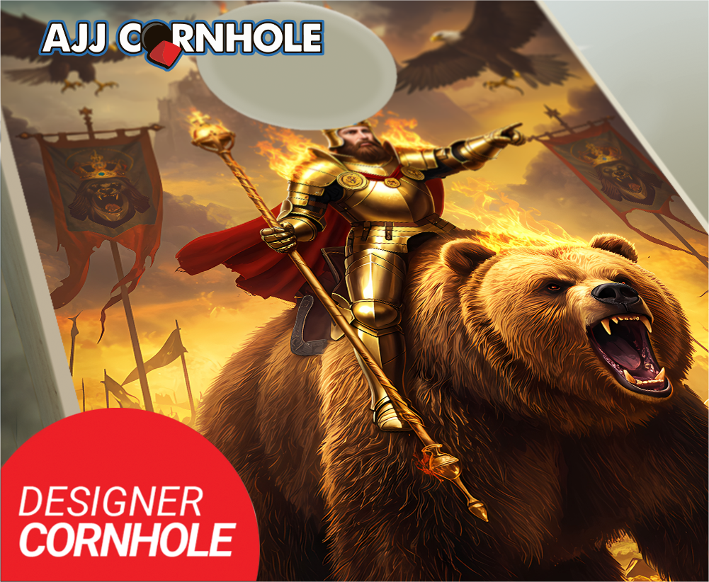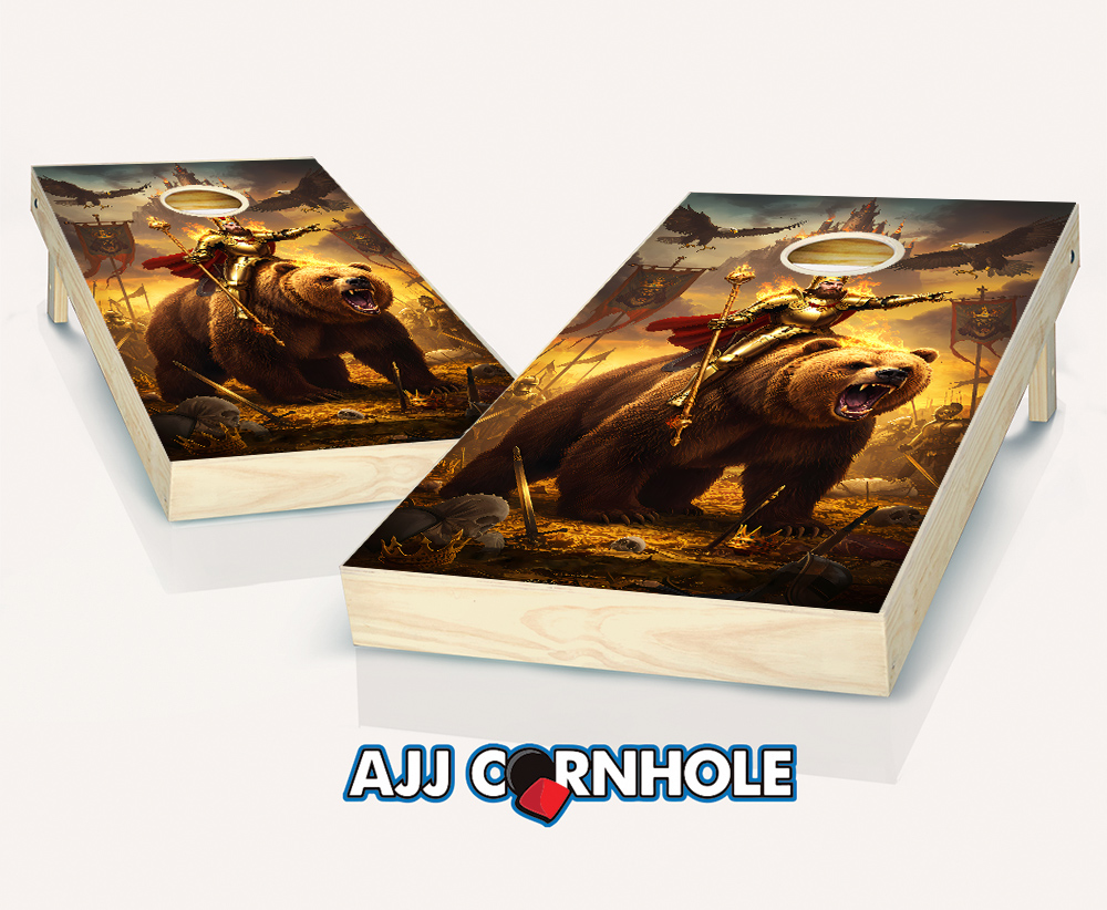 "King Arthur Riding a Bear & Eagles Flames" Cornhole Set