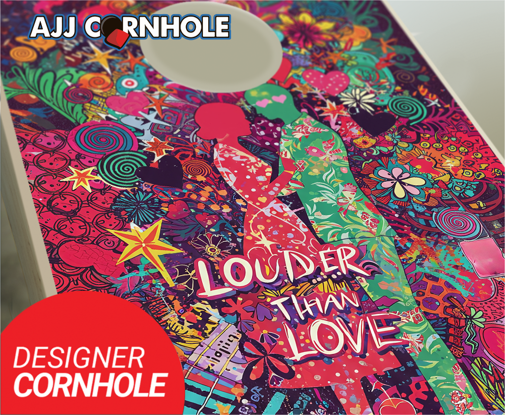 "Louder than Love - Abstract Collage Punk Rock" Cornhole Set