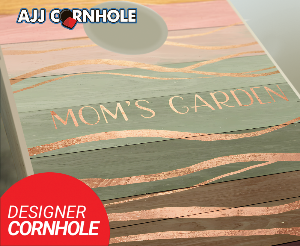 "Mom's Garden Sage Maroon Wave" Cornhole Set