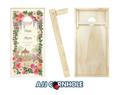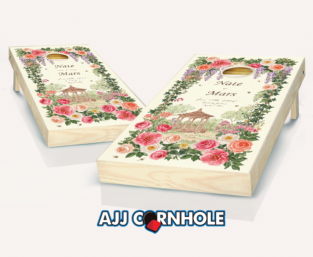 "Multicolored Rose Border Gazebo" Cornhole Set