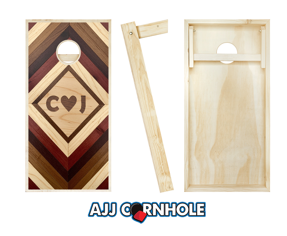 All sets are made using a premium 2x4 frame and 1/2" sanded plywood playing surface. These cornhole game boards feature folding 2x4 legs secured with galvanized bolts.