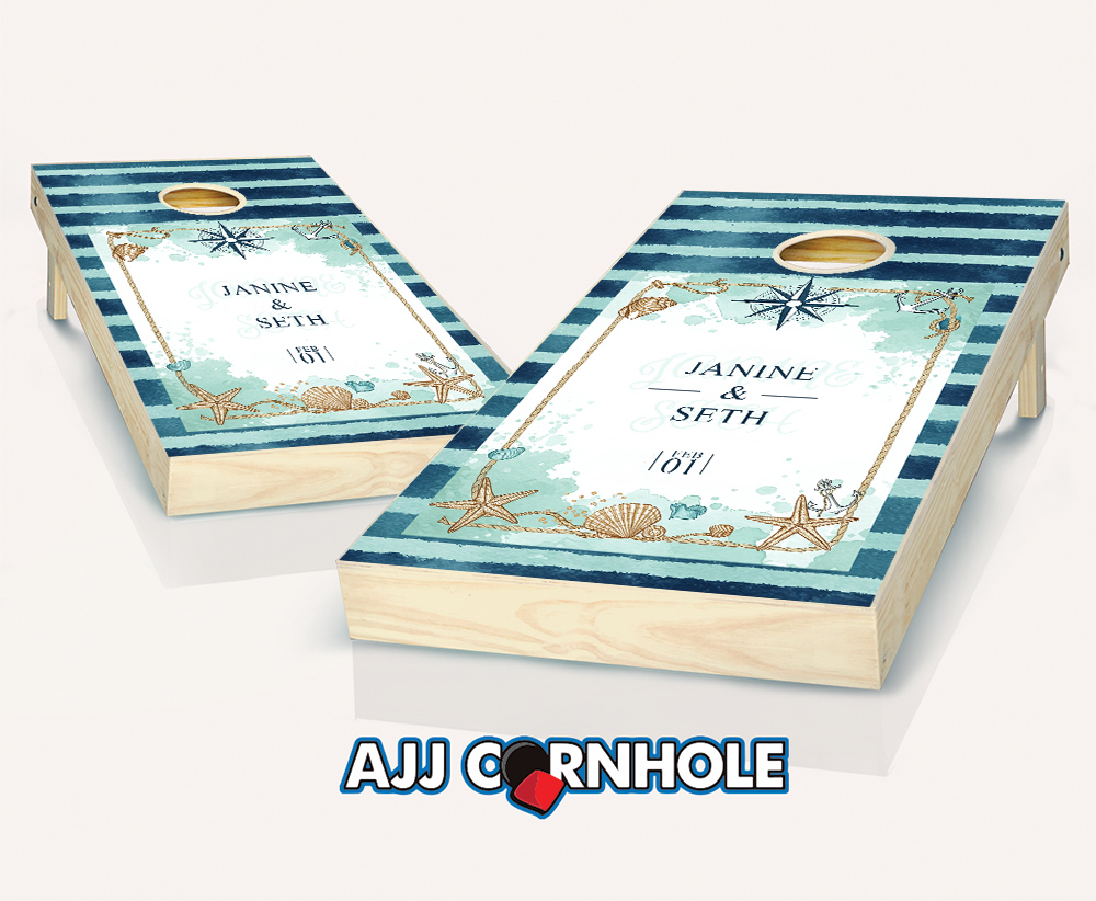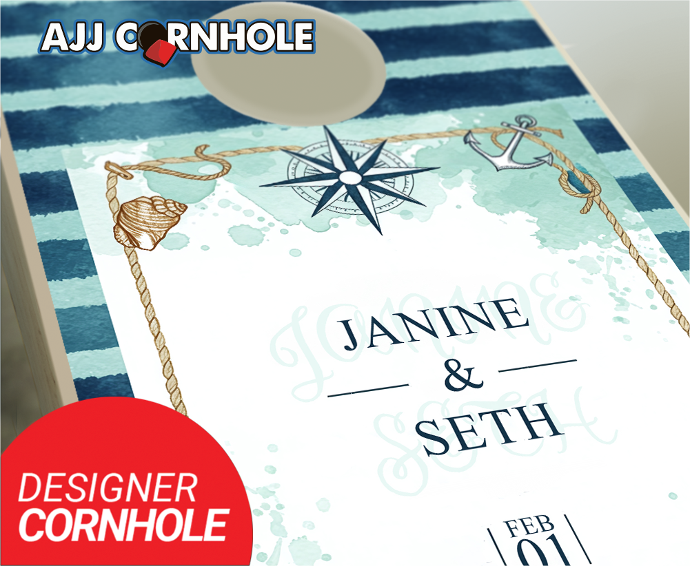 "Nautical Stripes Matte" Cornhole Set
