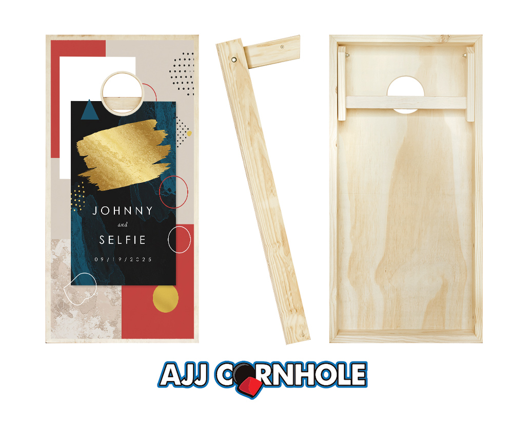 All sets are made using a premium 2x4 frame and 1/2" sanded plywood playing surface. These cornhole game boards feature folding 2x4 legs secured with galvanized bolts.