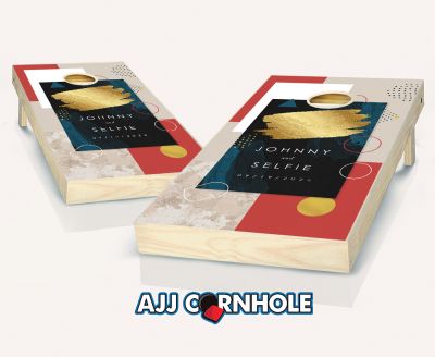 "Navy, Red and Gold Leaf Applique Wedding" Cornhole Set