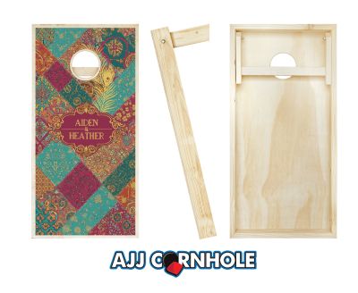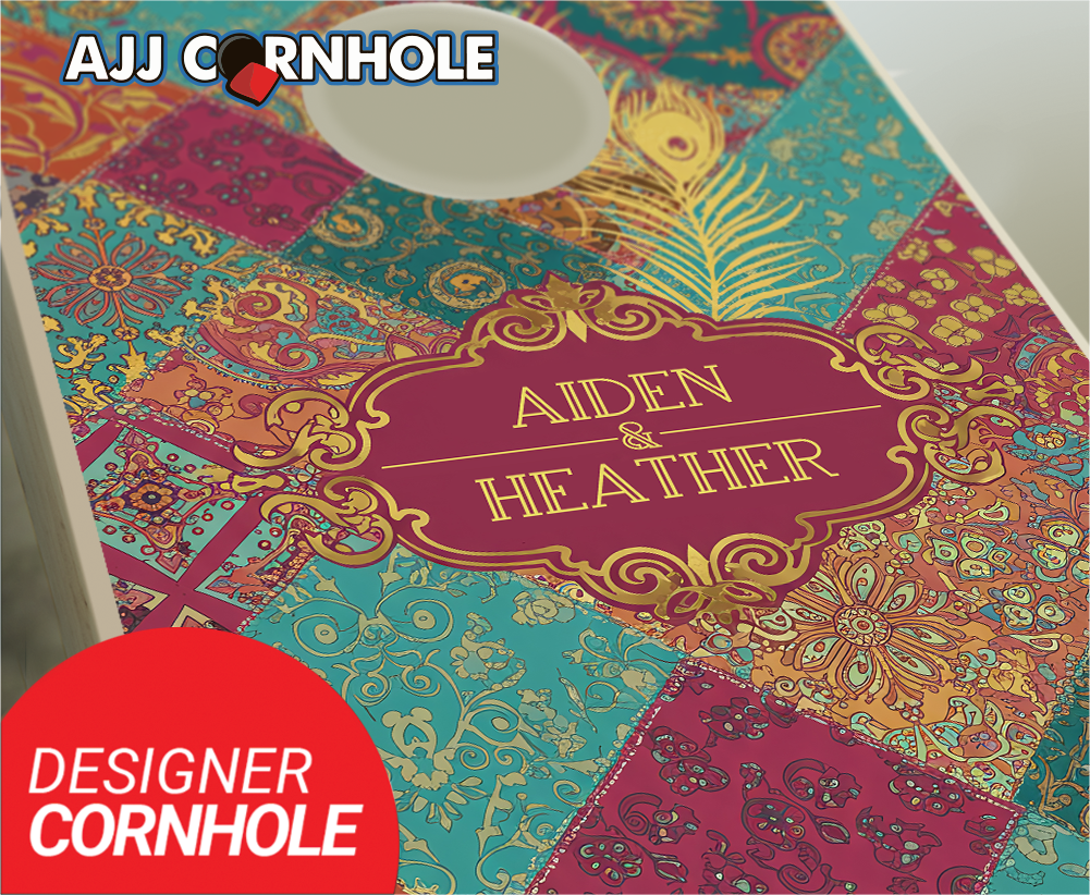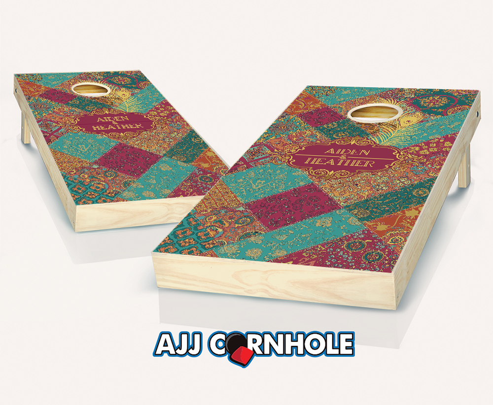"Patchwork Fuchsia & Turquoise Wedding" Cornhole Set