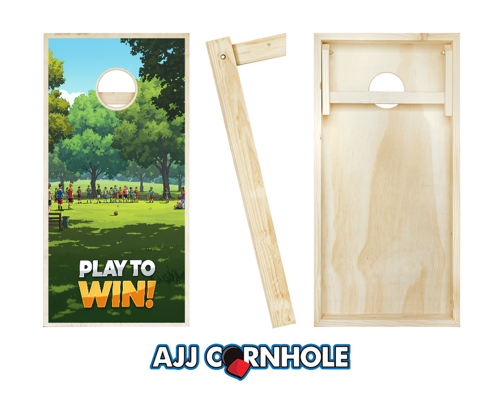 All sets are made using a premium 2x4 frame and 1/2" sanded plywood playing surface. These cornhole game boards feature folding 2x4 legs secured with galvanized bolts.
