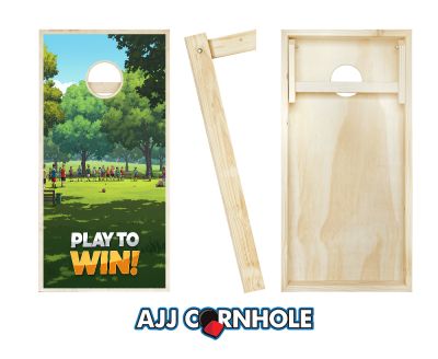 "Play to Win Green Cartoon Pink" Cornhole Set
