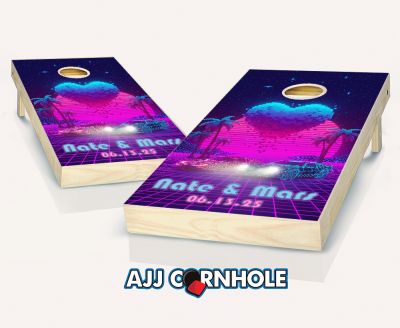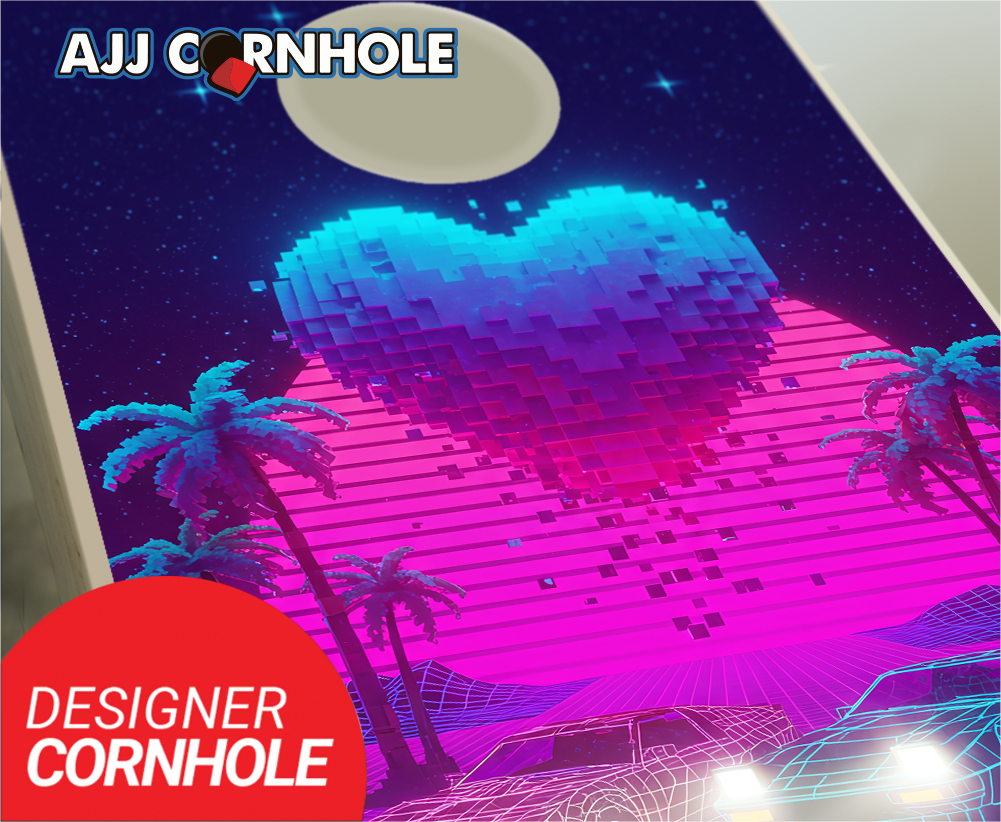 "Retrowave Pixel Heart" Cornhole Set