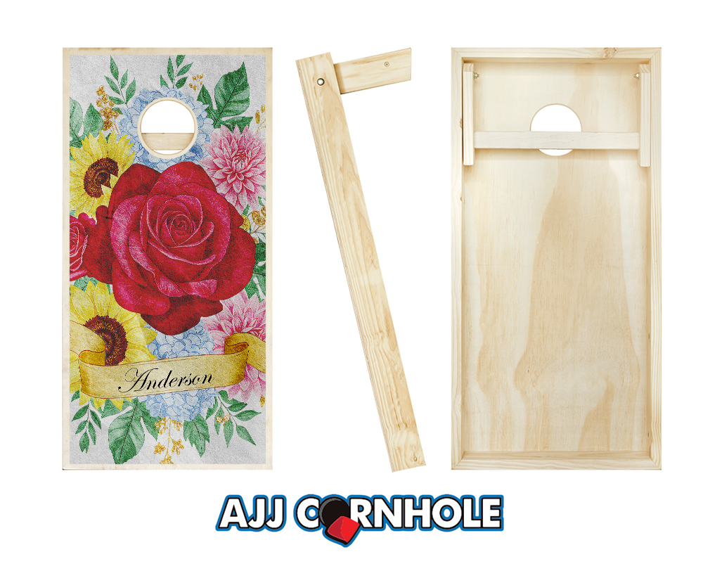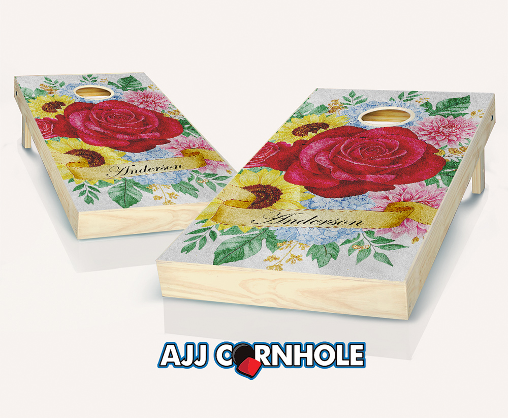 "Rose Sunflower Pansies Couples" Cornhole Set
