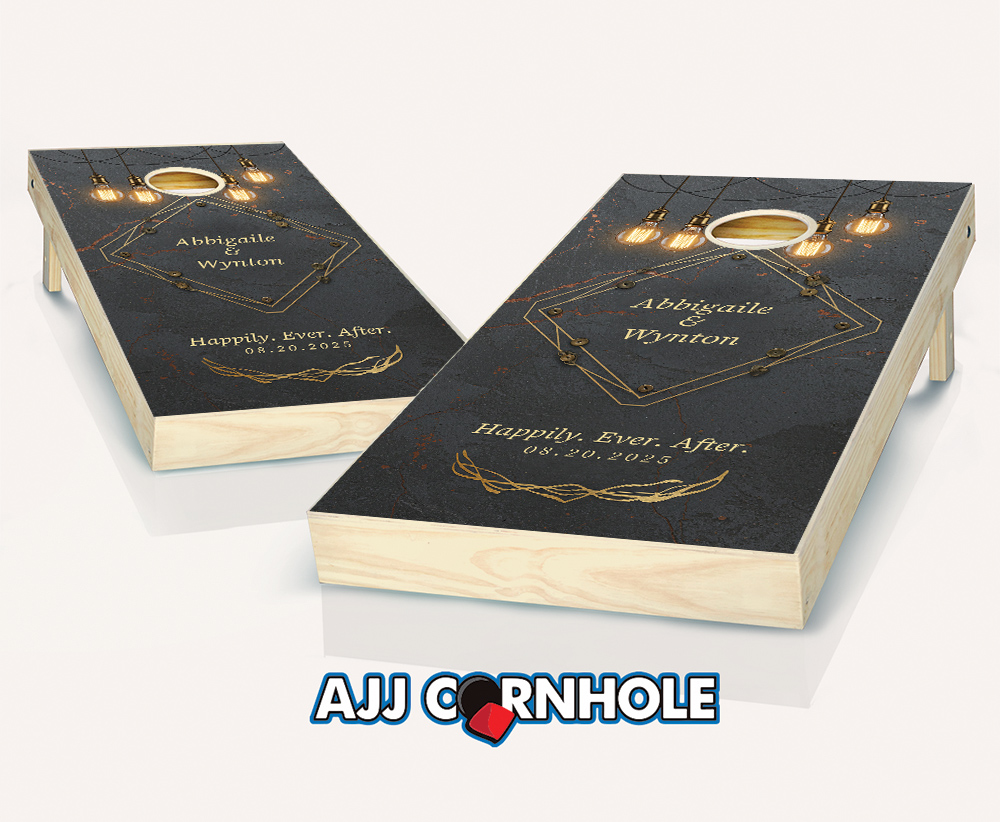 "Slate Industrial Modern Lightbulbs Wedding" Cornhole Set