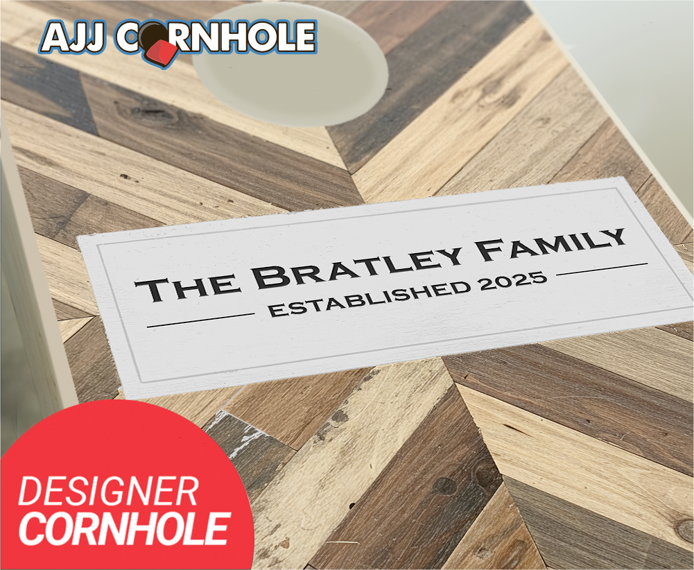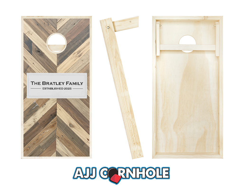 "Slate Plaque on Slanted Wood" Cornhole Set