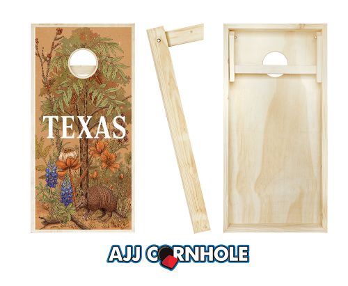 All sets are made using a premium 2x4 frame and 1/2" sanded plywood playing surface. These cornhole game boards feature folding 2x4 legs secured with galvanized bolts.