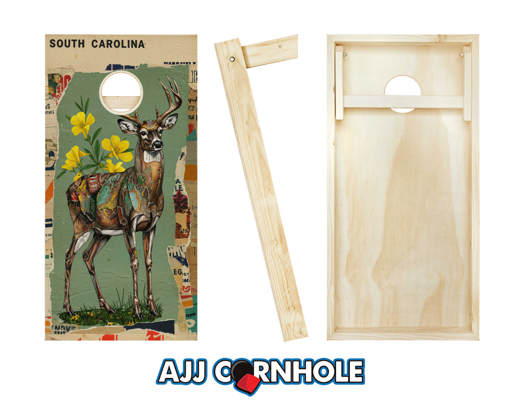 All sets are made using a premium 2x4 frame and 1/2" sanded plywood playing surface. These cornhole game boards feature folding 2x4 legs secured with galvanized bolts.