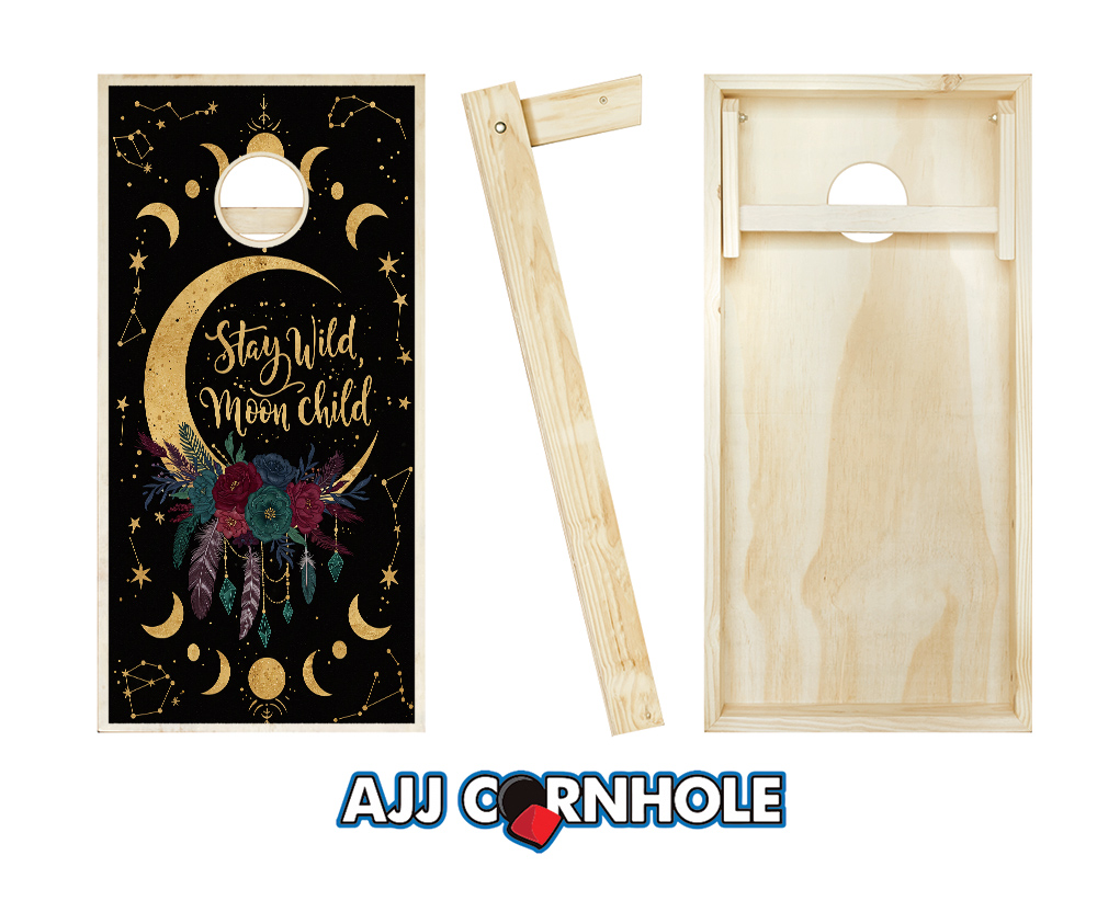 All sets are made using a premium 2x4 frame and 1/2" sanded plywood playing surface. These cornhole game boards feature folding 2x4 legs secured with galvanized bolts.