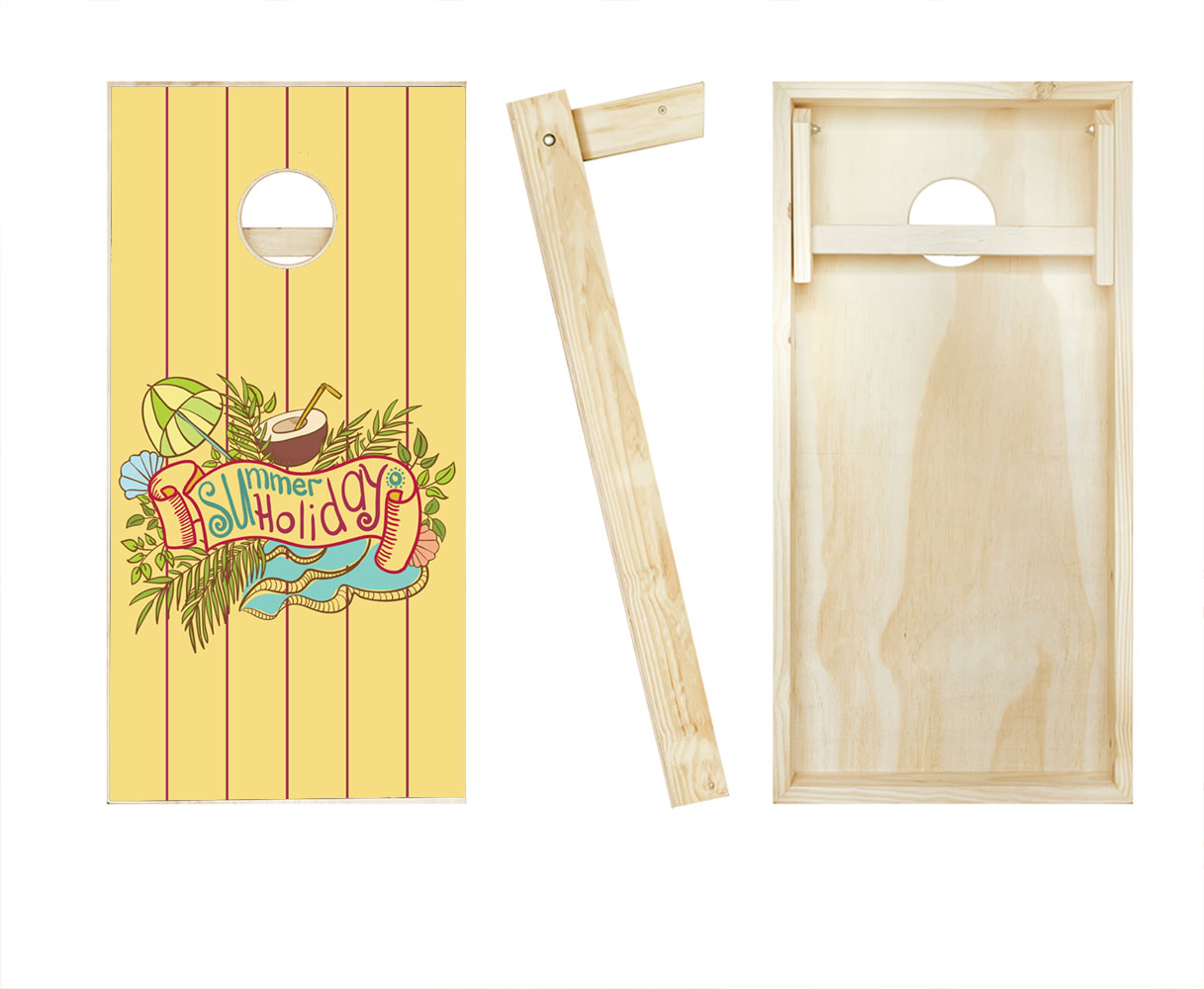 All sets are made using a premium 2x4 frame and 1/2" sanded plywood playing surface. These cornhole game boards feature folding 2x4 legs secured with galvanized bolts.