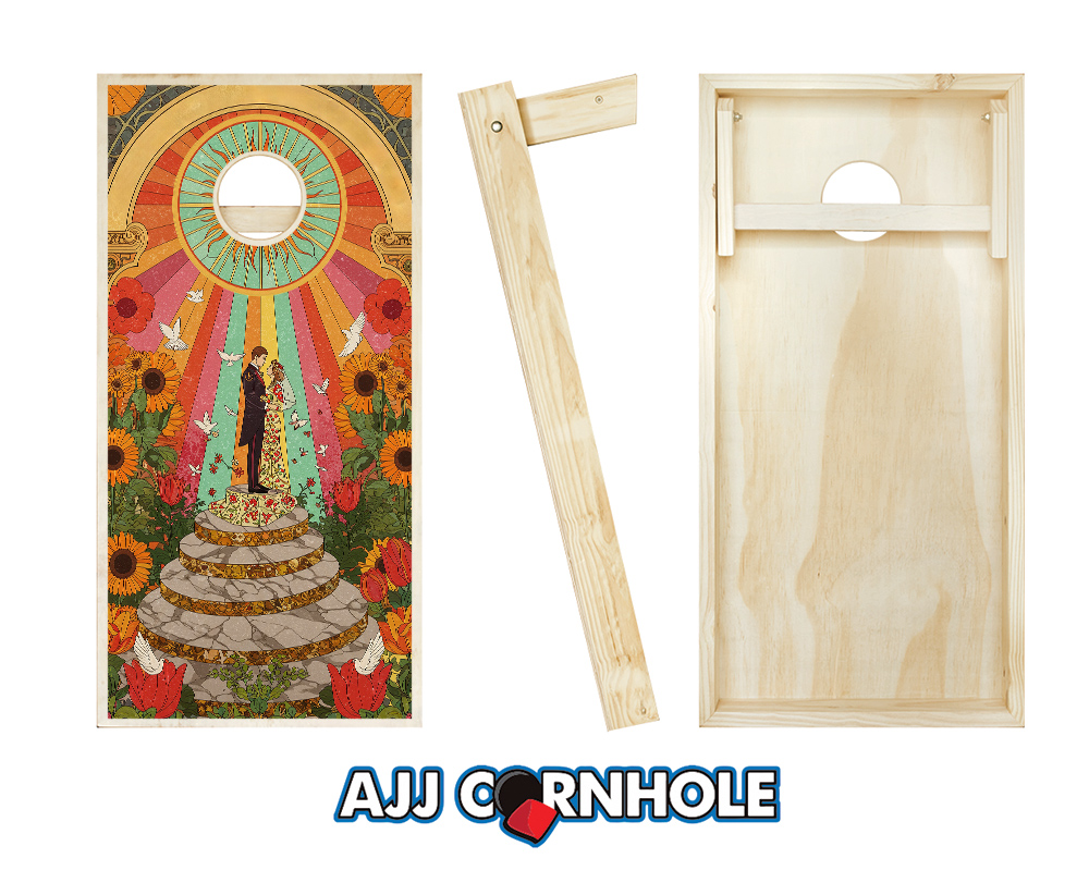 All sets are made using a premium 2x4 frame and 1/2" sanded plywood playing surface. These cornhole game boards feature folding 2x4 legs secured with galvanized bolts.