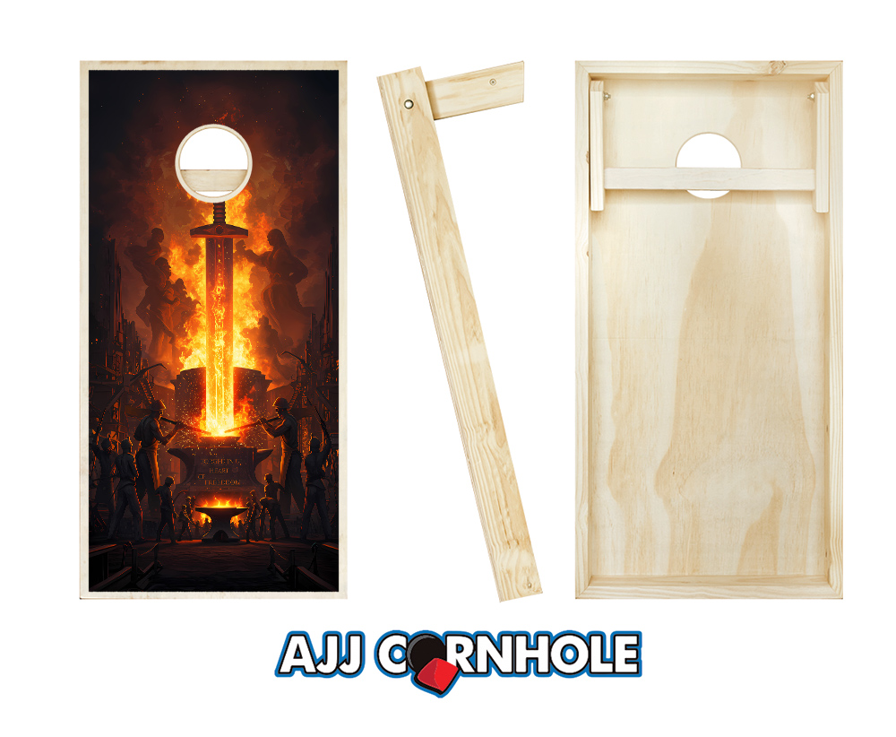 All sets are made using a premium 2x4 frame and 1/2" sanded plywood playing surface. These cornhole game boards feature folding 2x4 legs secured with galvanized bolts.