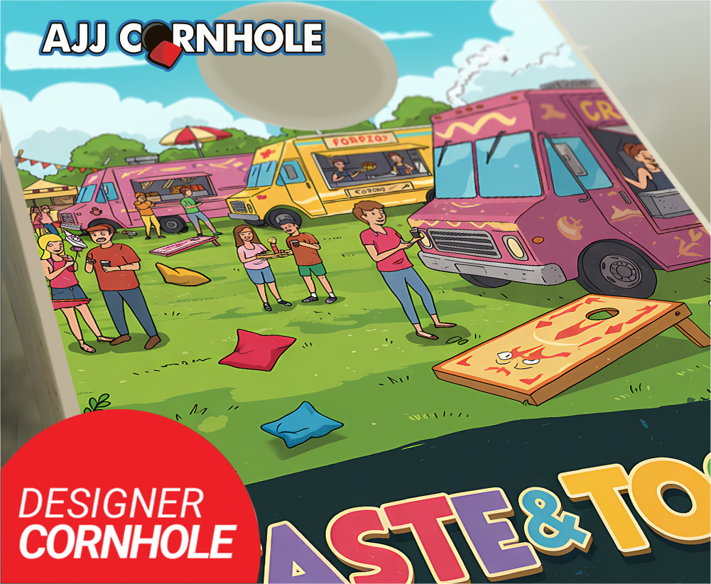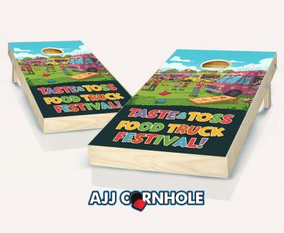 "Taste & Toss Food Truck Festival Cartoon" Cornhole Set