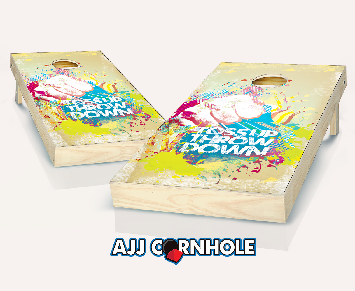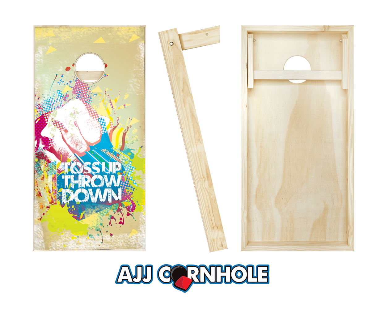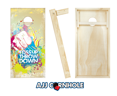 All sets are made using a premium 2x4 frame and 1/2" sanded plywood playing surface. These cornhole game boards feature folding 2x4 legs secured with galvanized bolts.