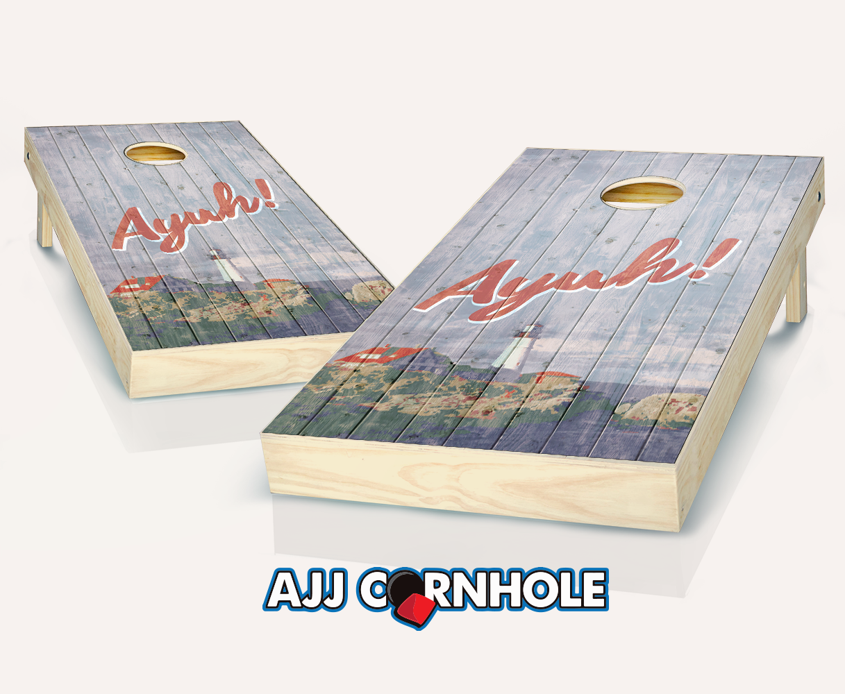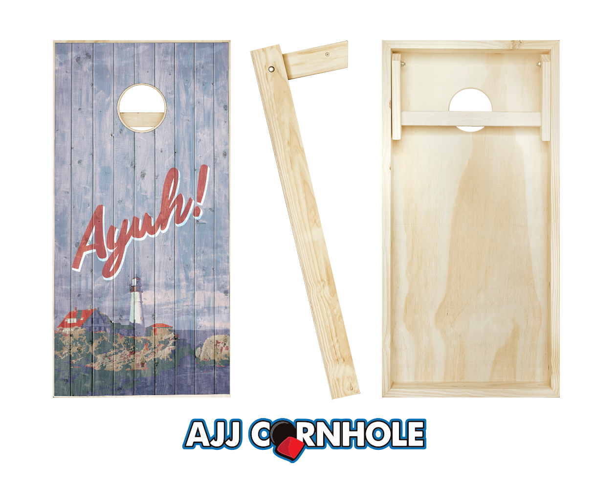 All sets are made using a premium 2x4 frame and 1/2" sanded plywood playing surface. These cornhole game boards feature folding 2x4 legs secured with galvanized bolts.