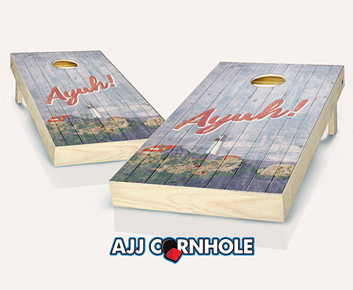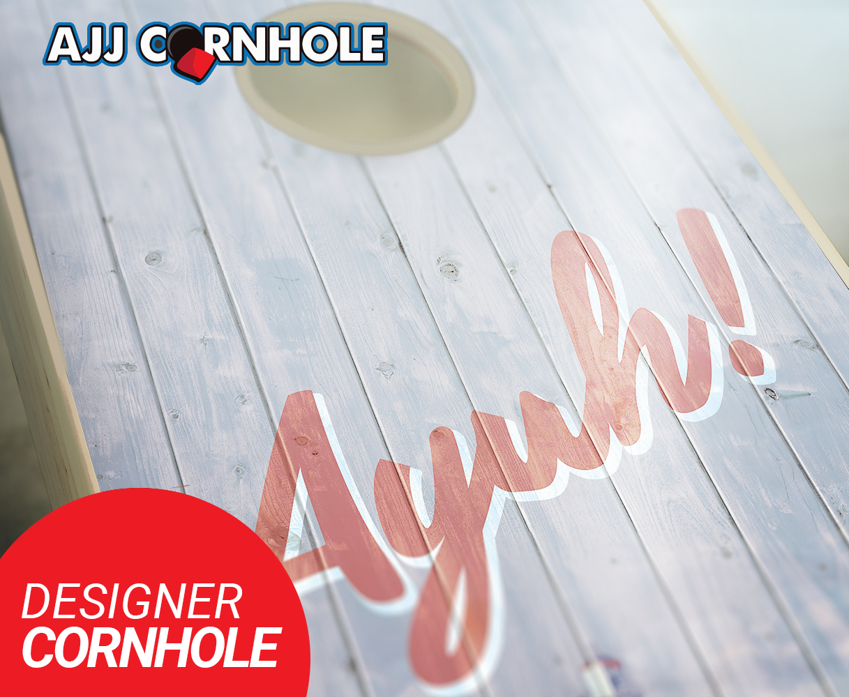 The image is directly printed on the wood and then finished with a clear coat polyurethane to protect your cornhole game boards for years of Cornhole!