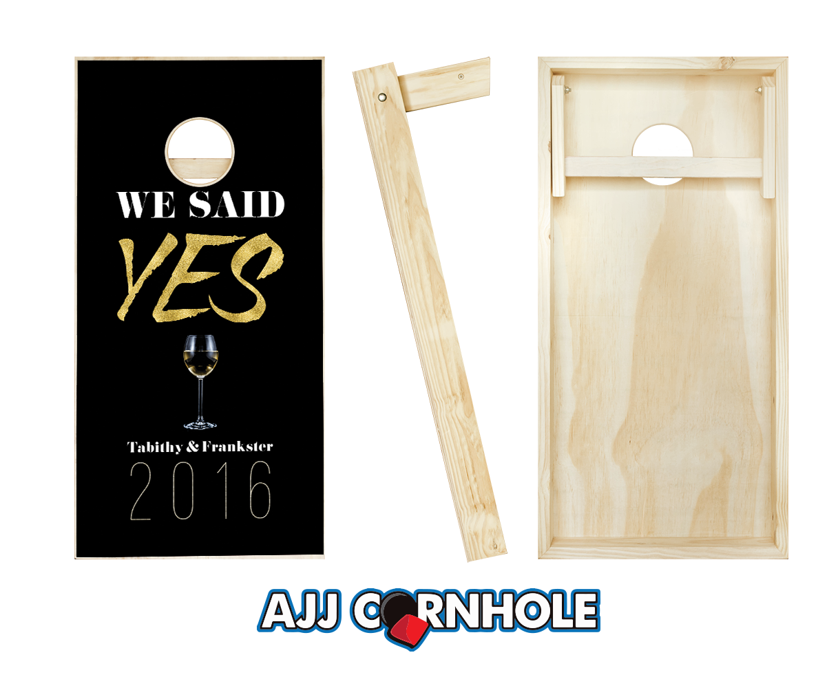 All sets are made using a premium 2x4 frame and 1/2" sanded plywood playing surface. These cornhole game boards feature folding 2x4 legs secured with galvanized bolts.