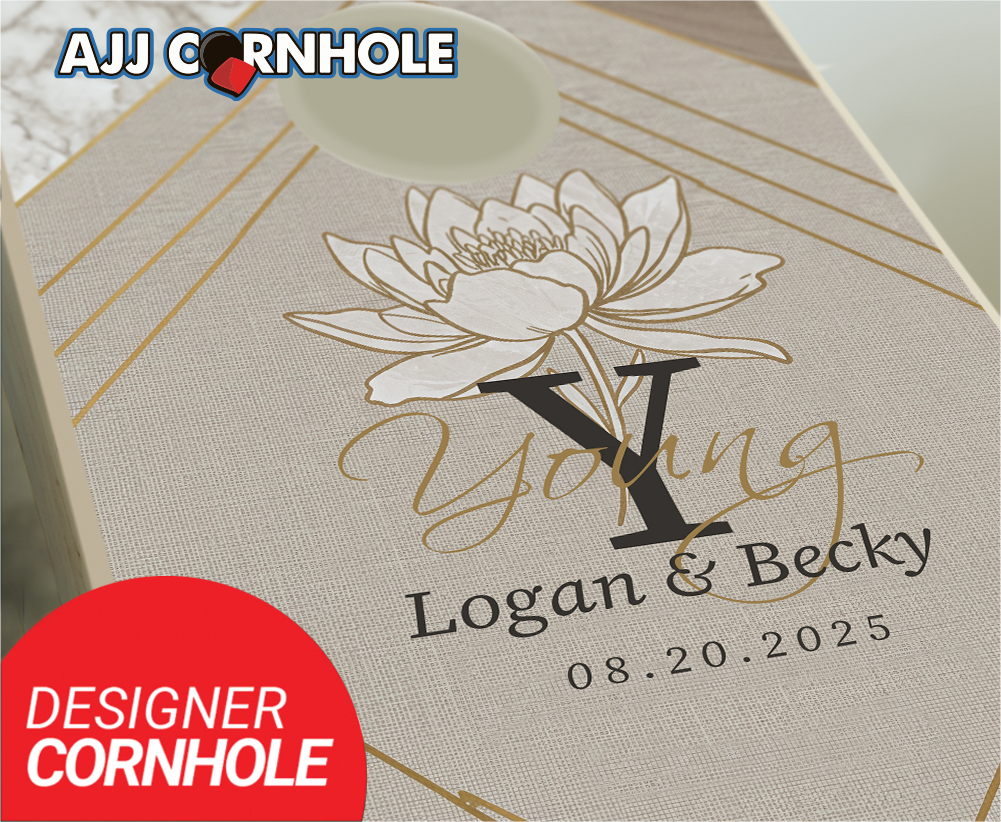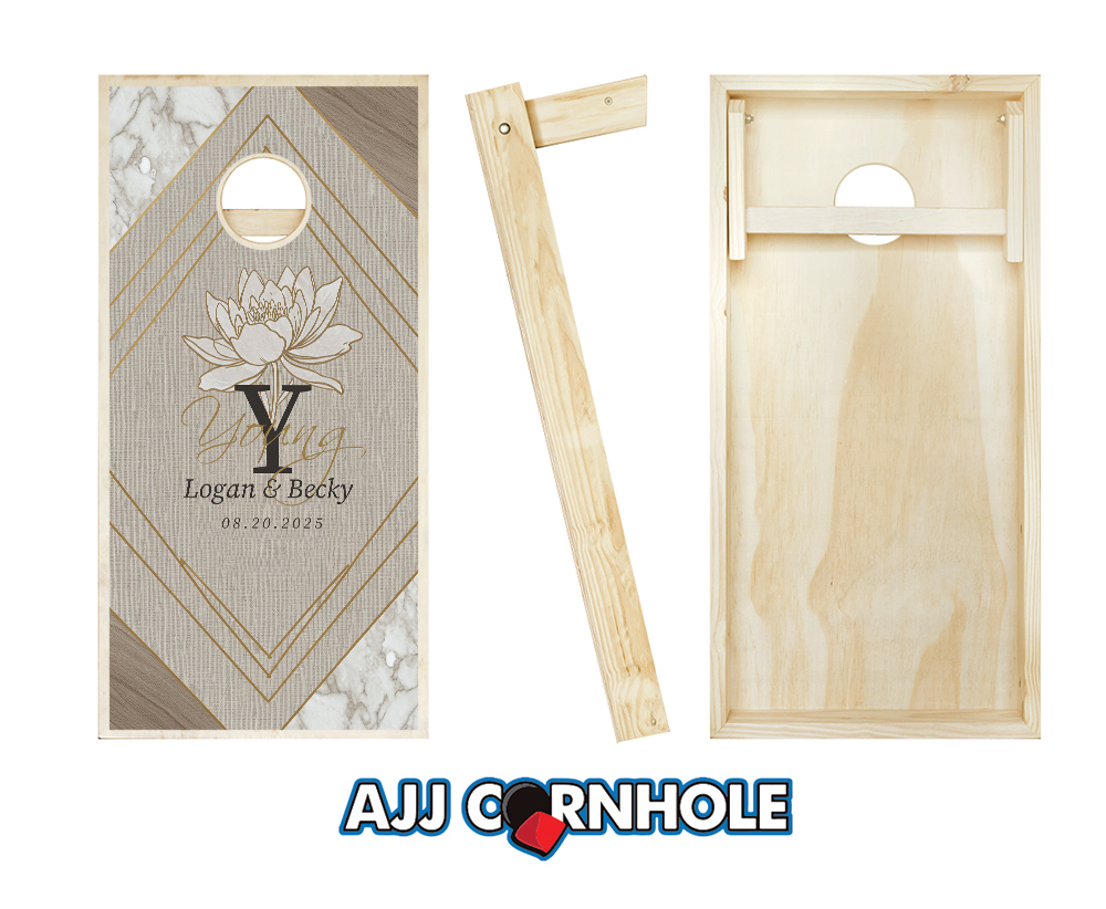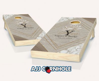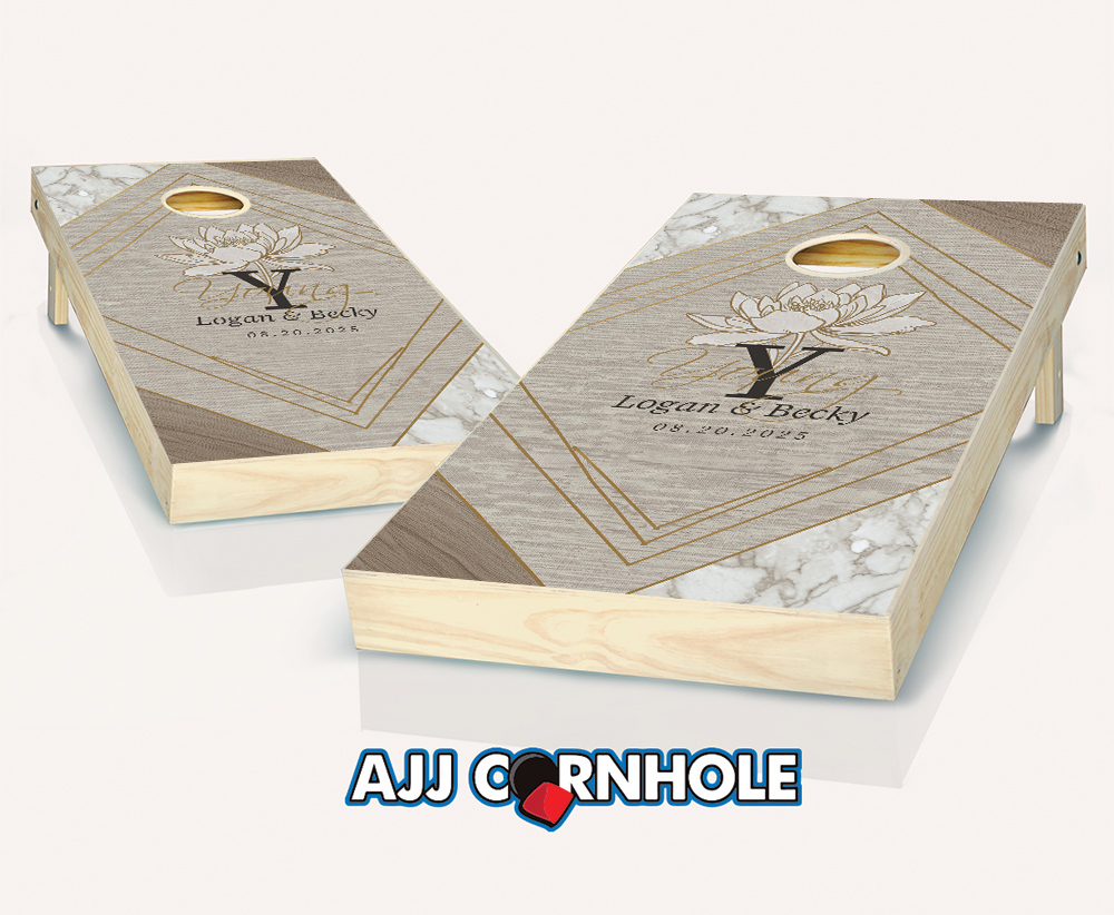 "Wedding Beige Marble Canvas Flower" Cornhole Set