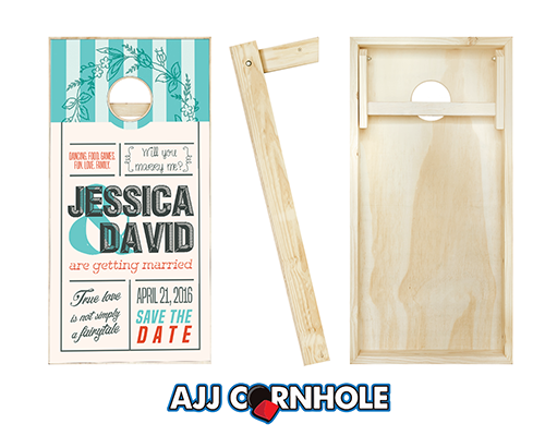 All sets are made using a premium 2x4 frame and 1/2" sanded plywood playing surface. These cornhole game boards feature folding 2x4 legs secured with galvanized bolts.