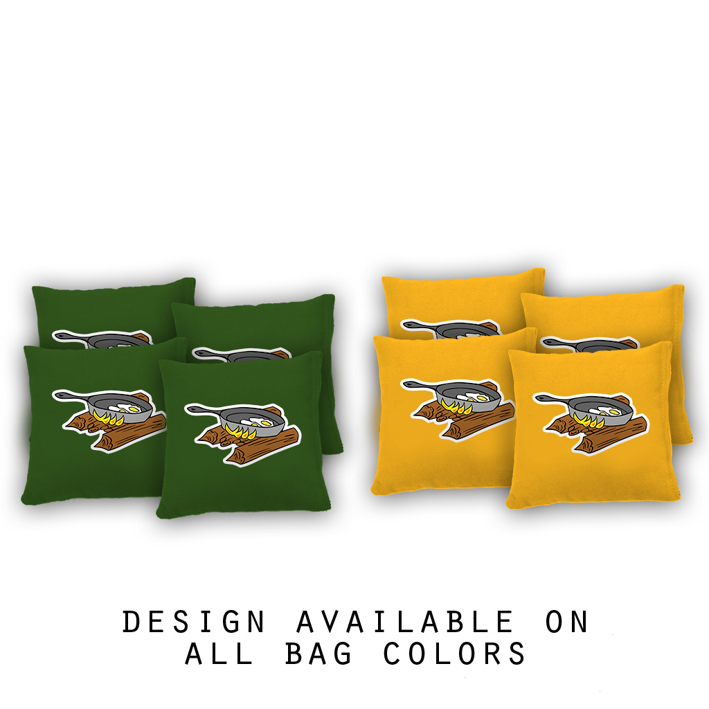All of our cornhole bags are 6in x 6in and are filled with 16oz of whole kernel feed corn. The bags are constructed from 10oz Duck Cloth and are TRIPLE STITCHED for durability and strength. .