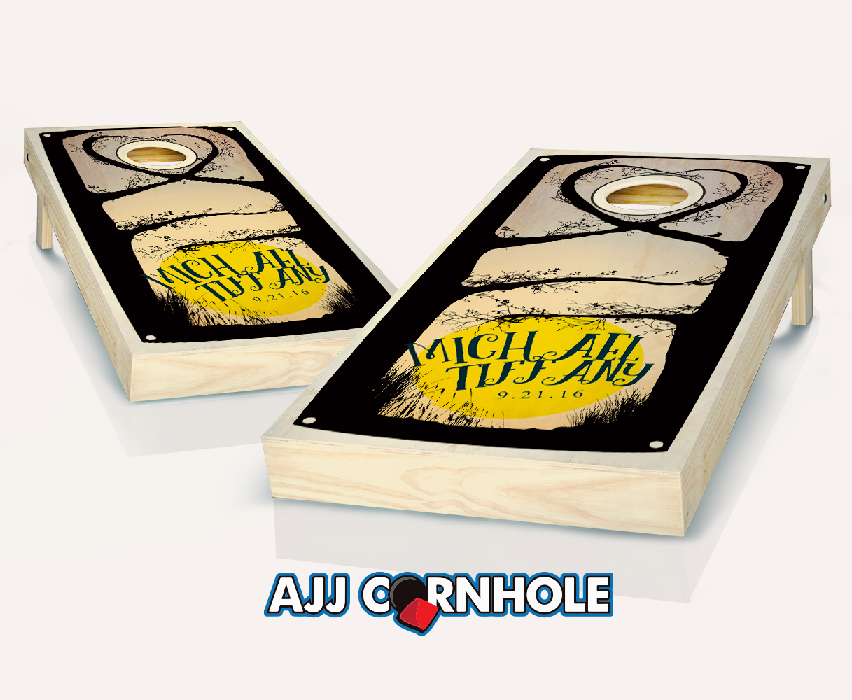 All sets are made using a premium 2x4 frame and 1/2" sanded plywood playing surface. Each set has folding 2x4 legs secured with galvanized bolts.
