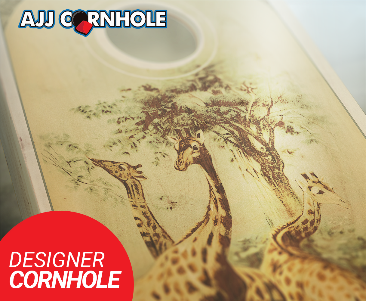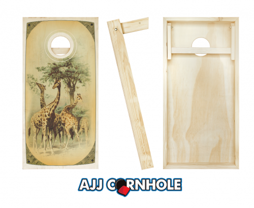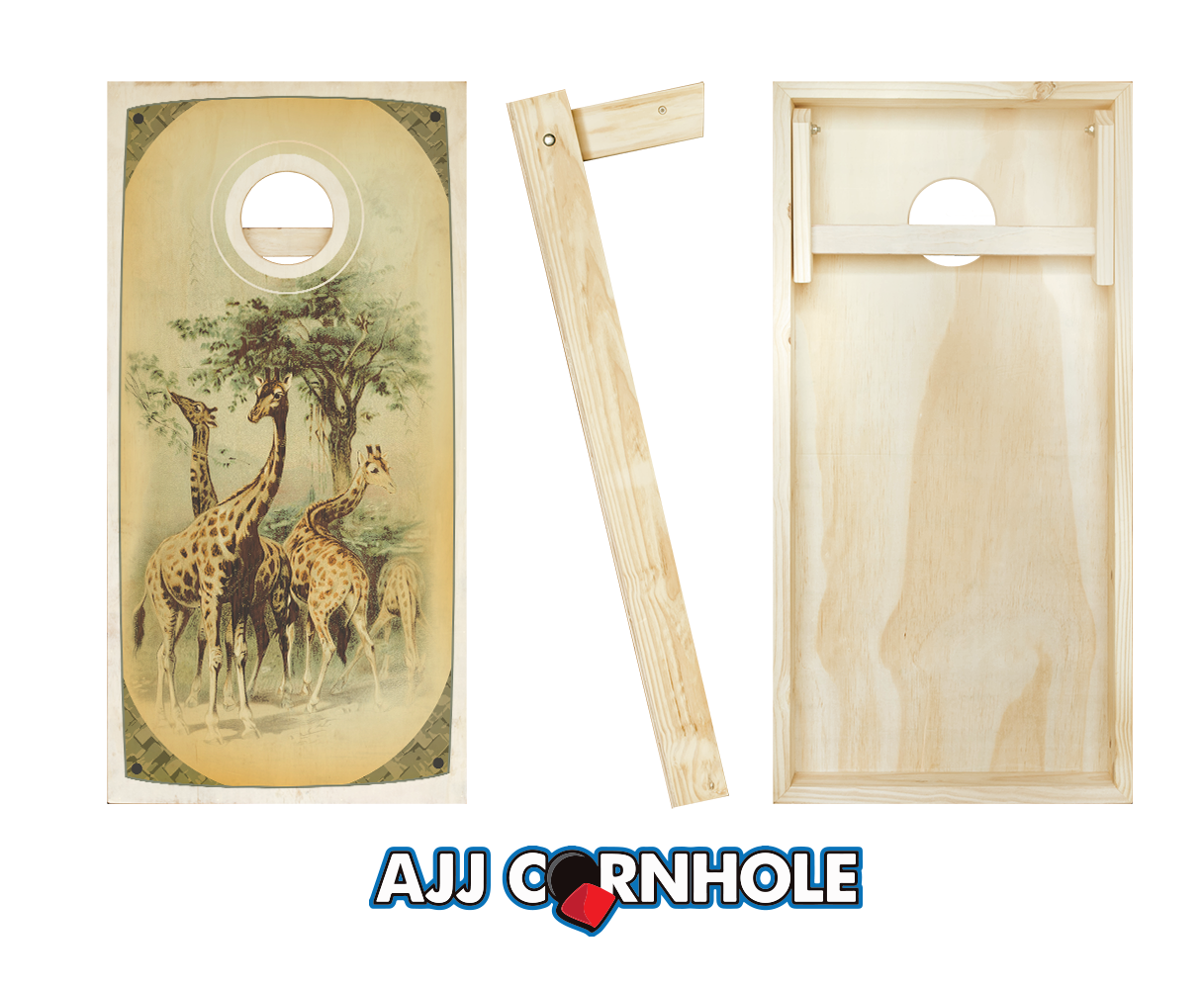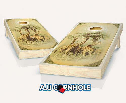 "Retro Stained Giraffe Safari" Cornhole Set