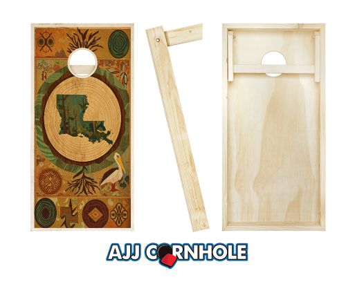 All sets are made using a premium 2x4 frame and 1/2" sanded plywood playing surface. These cornhole game boards feature folding 2x4 legs secured with galvanized bolts.